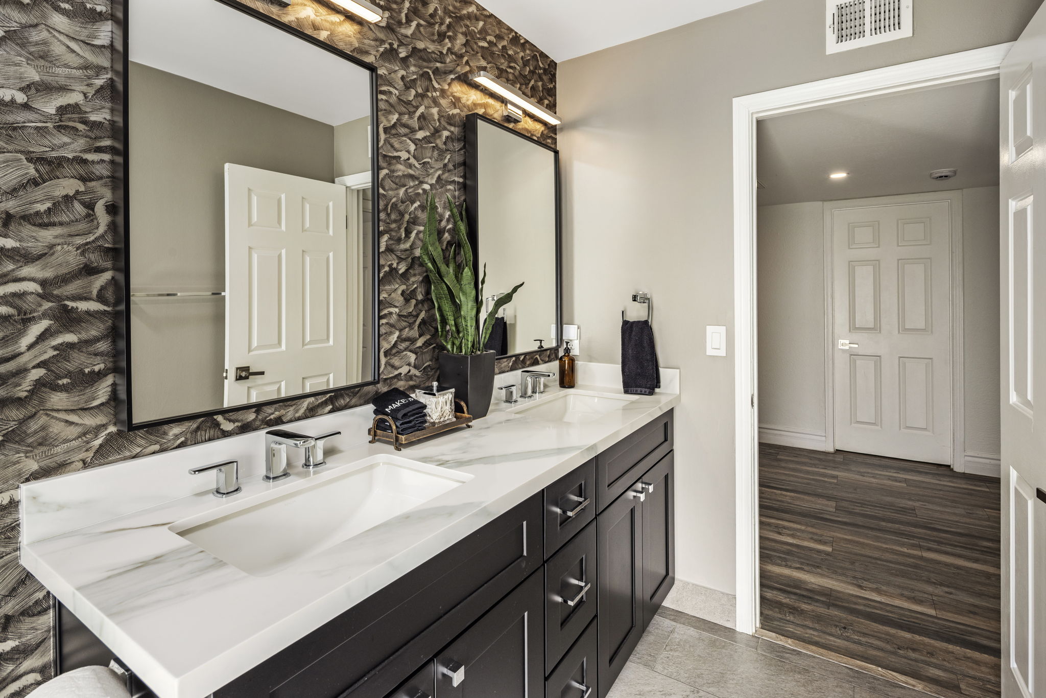 Bedroom 2 - Queen bed, shares hall bathroom with double vanities and a bath/shower combo. Bedroom 3 & 4 share this bathroom