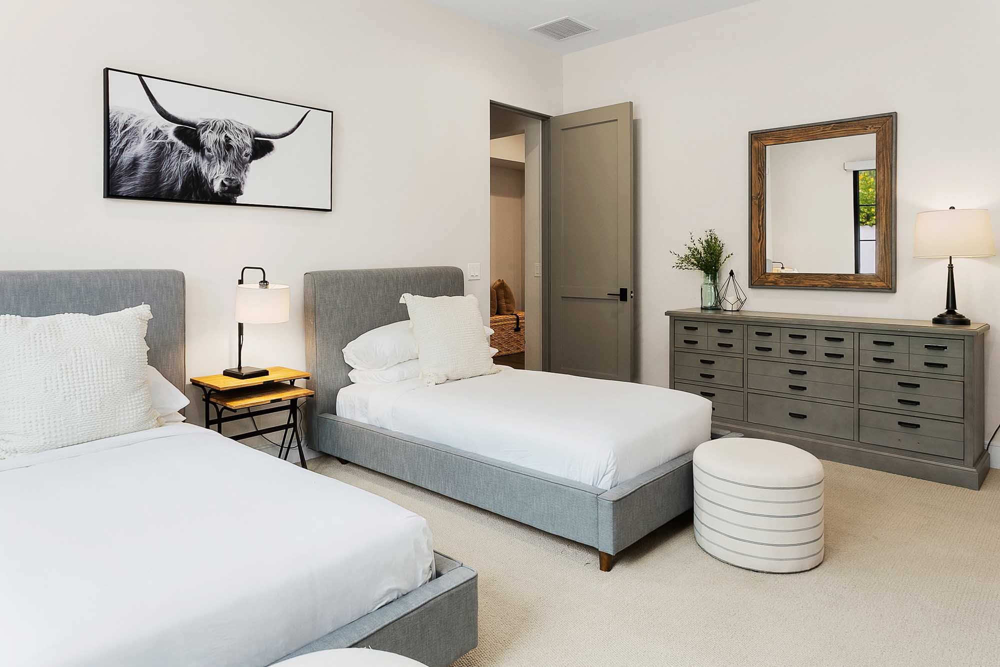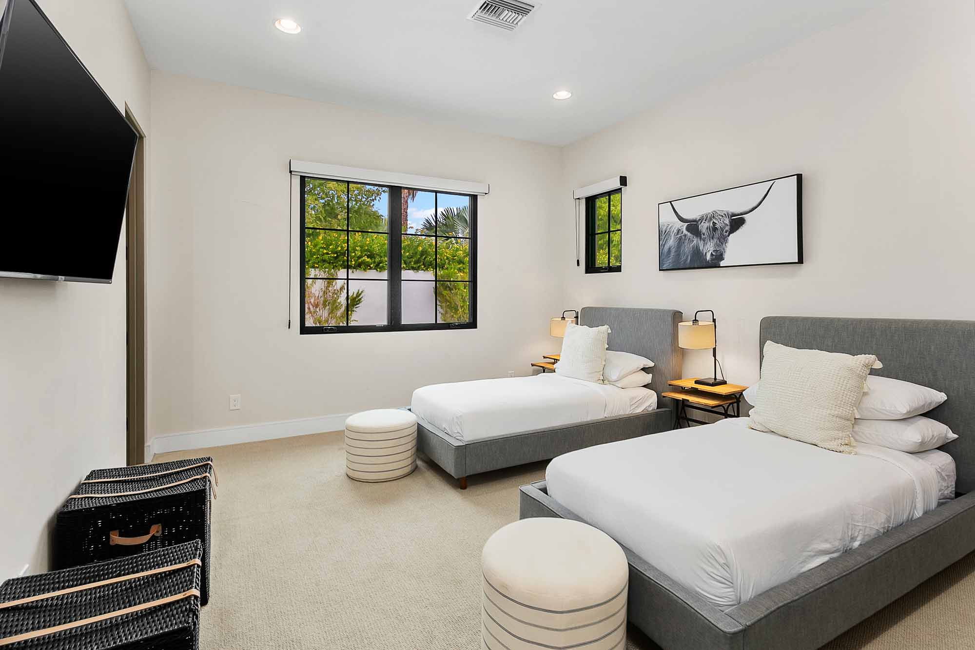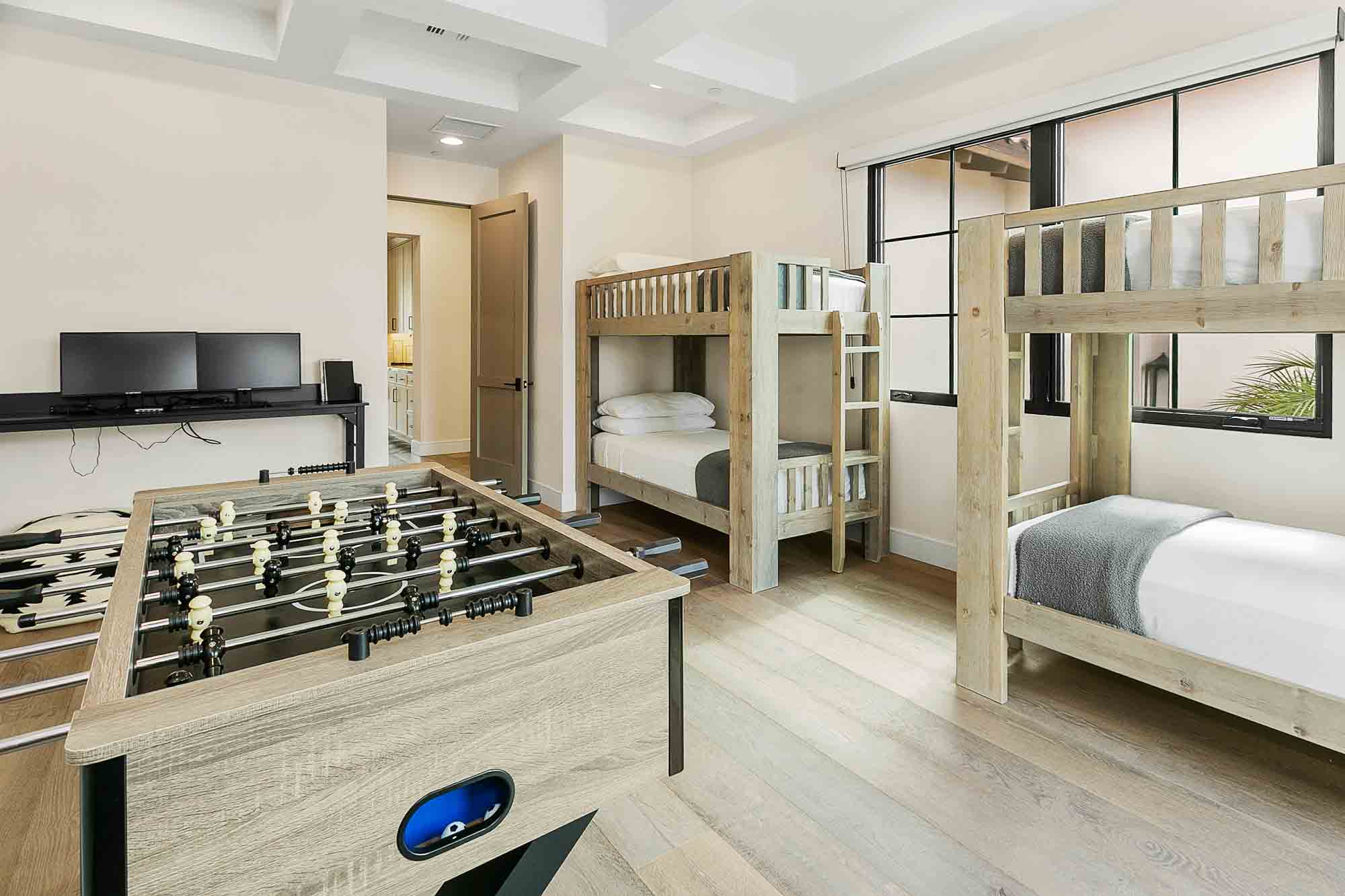 Bedroom 7 - Bunk Room, two sets of twin over twin bunk beds, sleeps 4, Restoration Hardware bunks and furniture, foosball table, smart TV, games, shares powder room, double doors with access to front patio