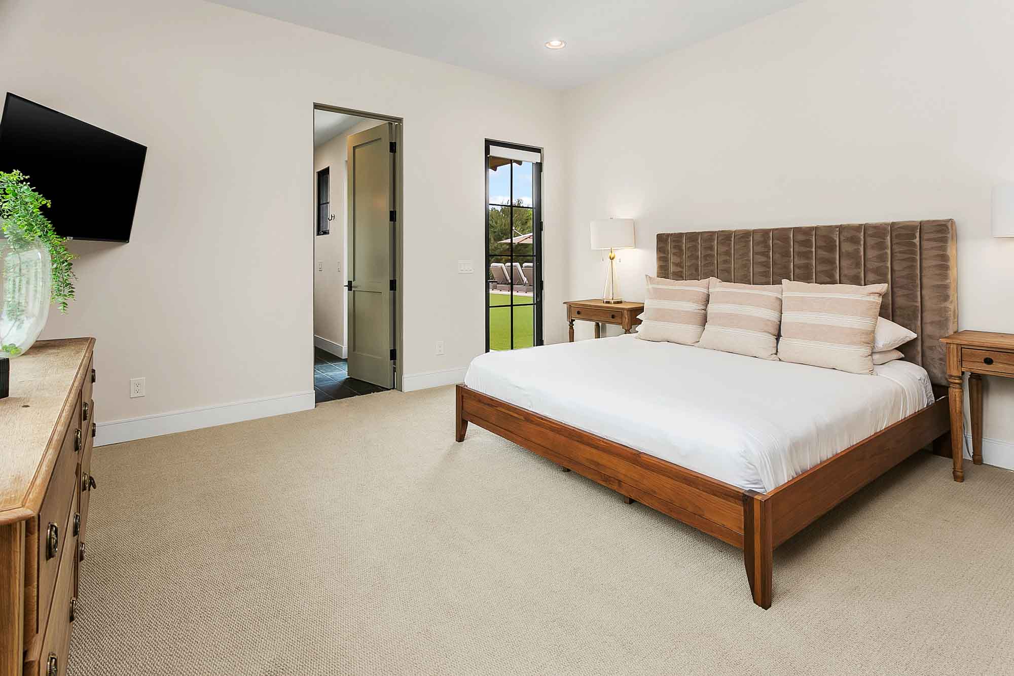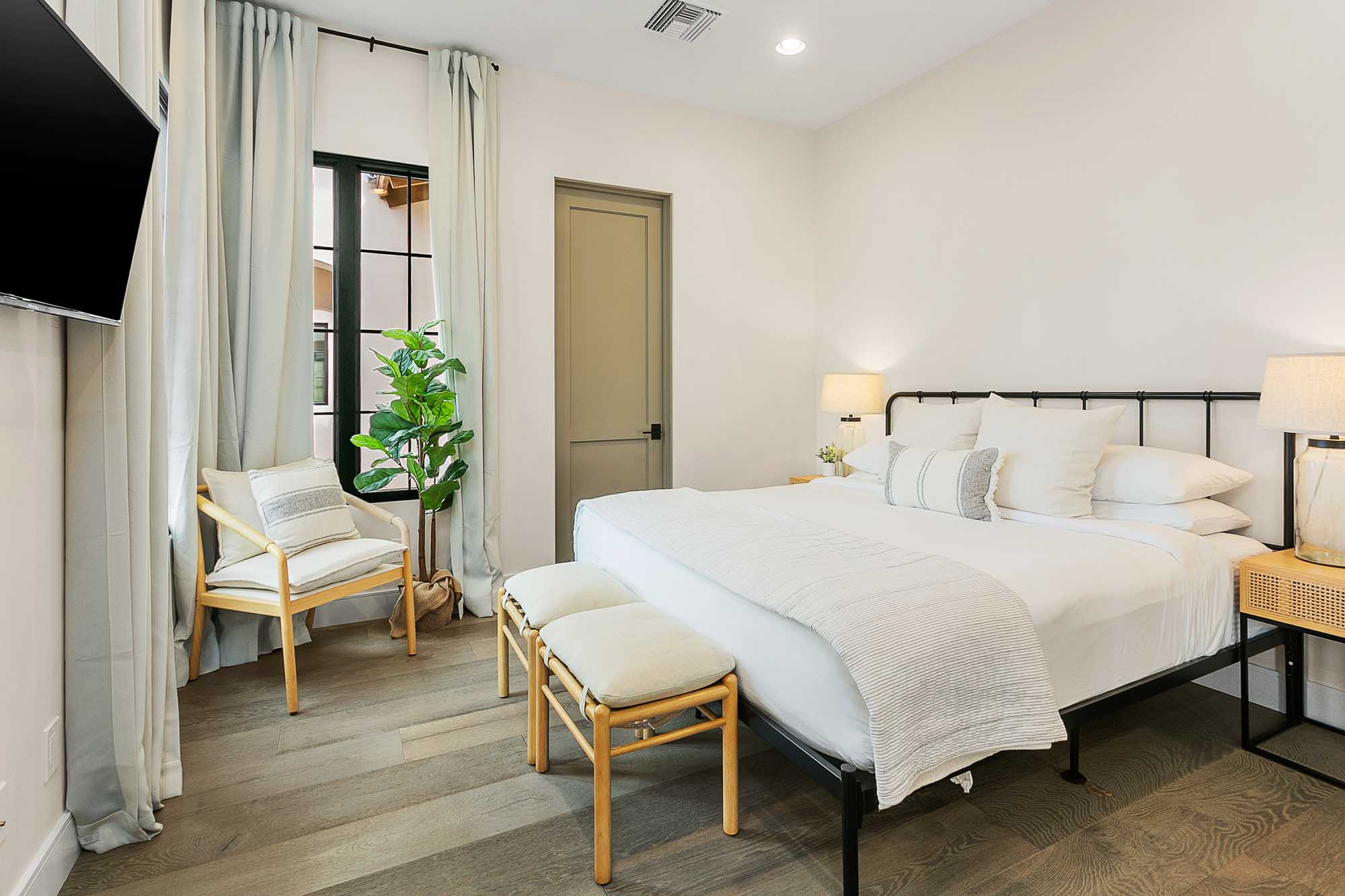 Bedroom 6 - King bed, en suite bathroom with walk-in shower, walk-in closet, smart TV, access to backyard